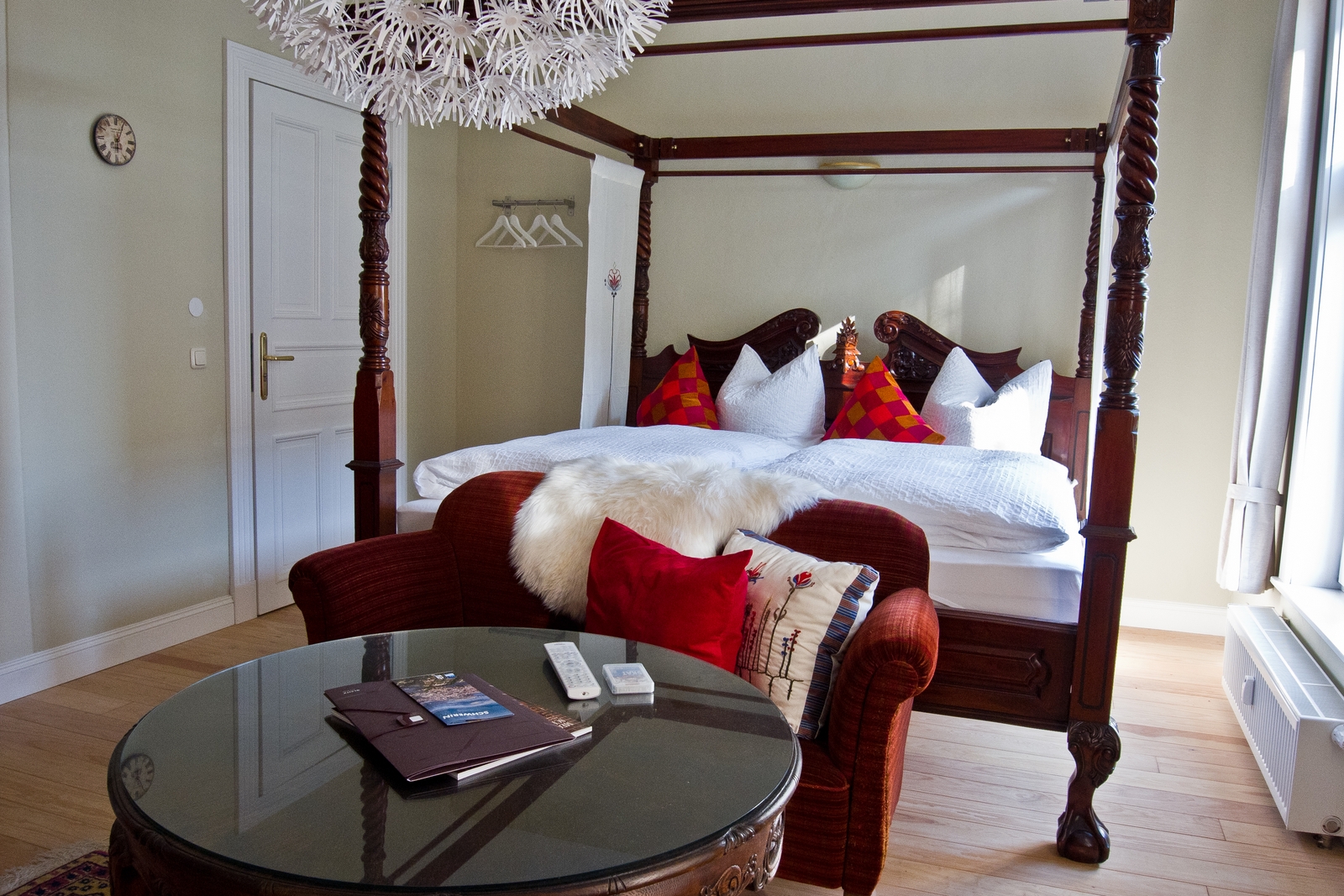 zur BuchungEine Wohnung als helles Appartement zum Garten mit einem barockem großen Himmelbett, welches das Herzstück des Zimmers darstellt. Es gibt eine gut ausgestattete Küche mit Kühlschrank, zwei Herdplatten, Mikrowelle, einem Wasserkocher, einem Toaster, einer Kaffeemaschine, Geschirr und Töpfen für die Verpflegung.